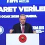 Dış ticaret rakamlarına değinen Erdoğan, “Dış ticaret rakamlarımızın objektif analizini yaparken şu noktanın göz ardı edilmemesi gerektiği kanaatindeyim. 2025 yılı küresel ticarette belirsizliklerin tırmandığı ve korumacılığın belirgin biçimde yükseldiği bir dönem olmuştur. Zayıf dış talep, yakın coğrafyamızda süre gelen savaşlar, iç karışıklıklar ve jeopolitik gerilimlere, tarife artışlarının yol açtığı sorunlar eklenmiştir. Türkiye tüm bunlara ilave olarak dolaylı maliyeti 150 milyar doları bulan 6 Şubat depremlerinin etkileriyle de mücadele etmiştir. Şunu burada büyük bir gururla söylemek isterim, dünyada pek az ülkenin altından kalkabileceği bu sınamaların üstesinden alnımızın akıyla geldik.” diye konuştu.